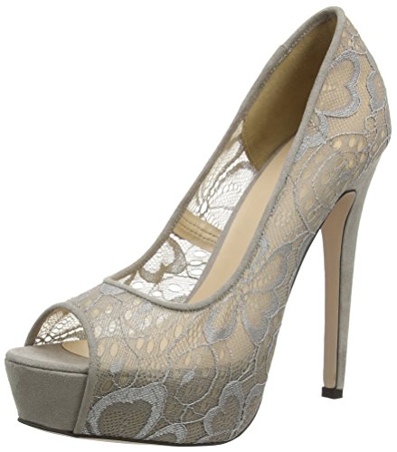 Grey peep toe stilettos with floral lace overlay. Ref: 3815Q1A